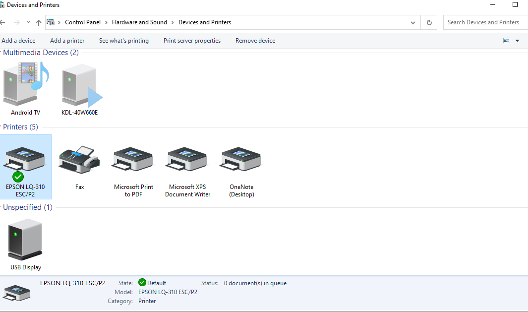 Chuột phải vào Epson LQ-310 → chọn Printing Preferences