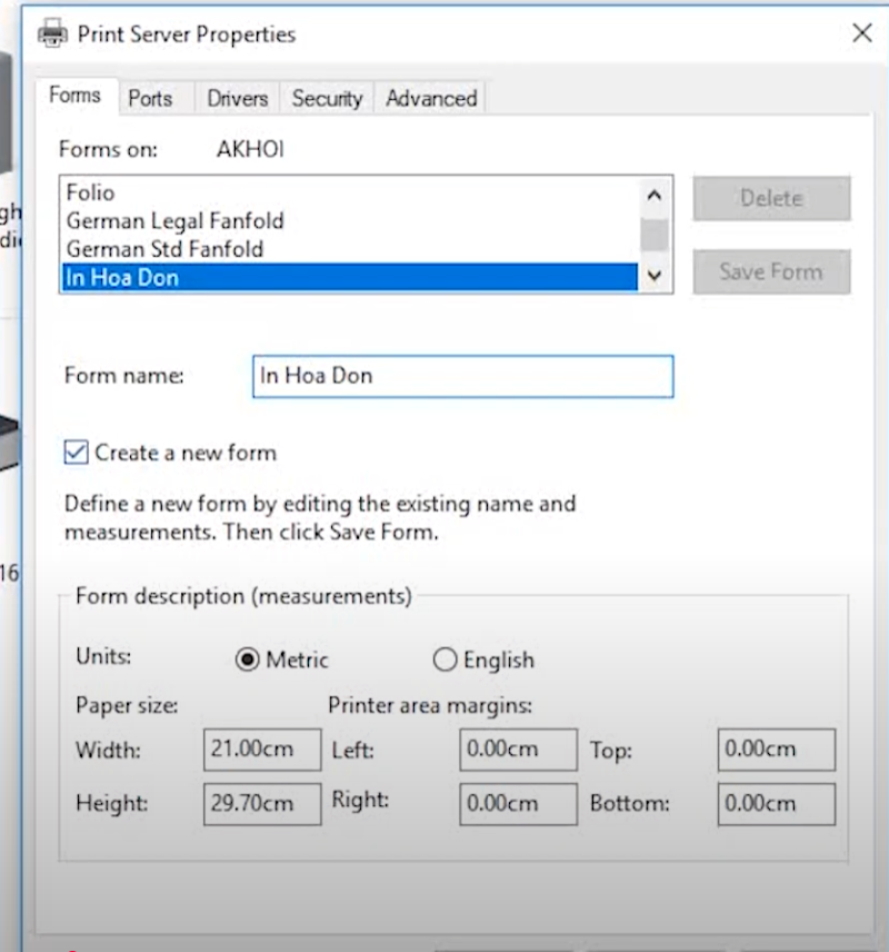 ✅ Bước 2: Tạo khổ giấy tùy chỉnh trong Windows