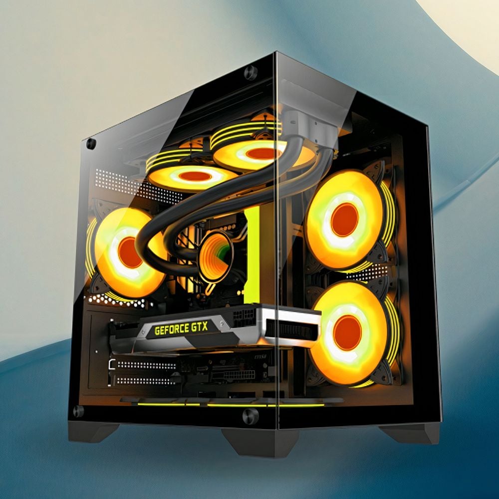 Thiết kế dạng case bể cá kính cường lực, giúp khoe linh kiện và hệ thống LED RGB đẹp mắt khi build PC.