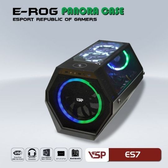 VSP Panora ES7 là vỏ case Micro-ATX thiết kế gaming hiện đại với khung thép chắc chắn và mặt trước dạng lưới giúp tăng khả năng tản nhiệt. Case hỗ trợ nhiều vị trí lắp quạt lớn 200mm phía trước, phù hợp build PC gaming hoặc PC làm việc cần luồng gió tốt. Phiên bản có hai màu đen và trắng để dễ phối linh kiện và phong cách build máy.