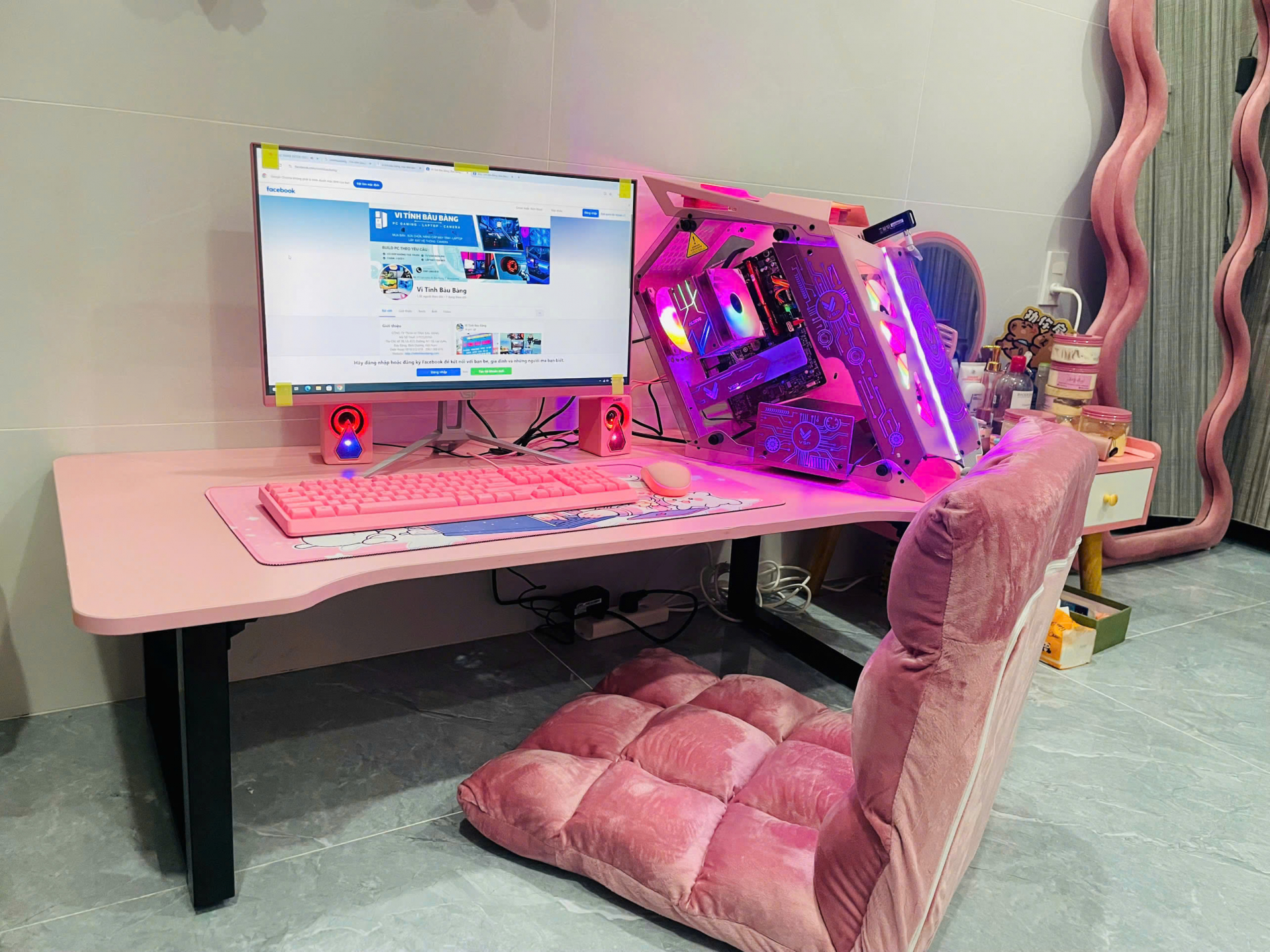 Combo Bàn Ghế Gaming Bệt - Đen/Trắng/Hồng