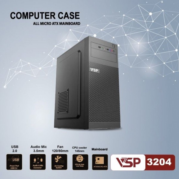 VSP 3204 là mẫu vỏ case văn phòng giá rẻ, thiết kế đơn giản và gọn gàng, phù hợp cho các cấu hình PC văn phòng, học tập hoặc phòng game tiết kiệm chi phí. Case hỗ trợ nhiều chuẩn mainboard phổ biến và có không gian đủ để lắp VGA cùng tản nhiệt CPU cơ bản.